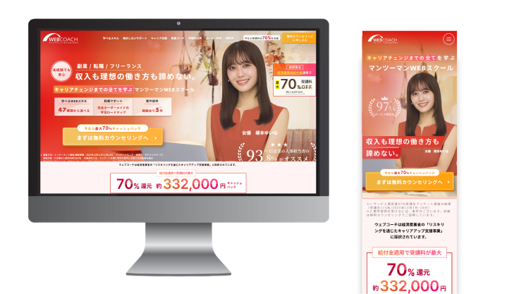 WEBCOACHはキャリアチェンジまでの全てを学び理想の"収入と働き方”どちらも叶えるためのマンツーマンWEBスクールです。